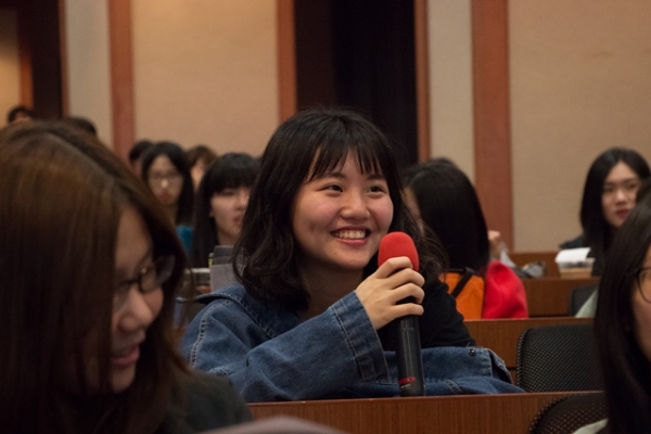 圖三:眾多學生前來聽講、認真發問,劉曉寧鼓勵學弟妹:「把握不同的機會、隨時準備好自己!」