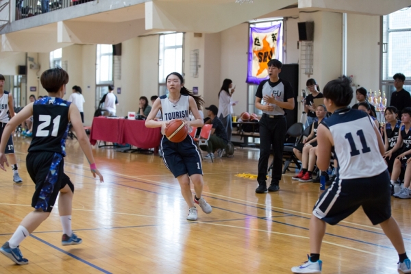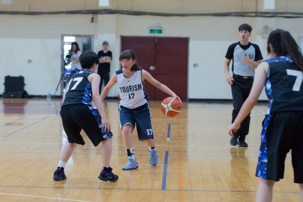女子組一開賽,雙方球權不斷輪替,雖多次出手,但都因手感不佳而未能把握得分機會,比賽經過4分鐘後,觀光系1號林虹秀率先發難,但傳管系也不落人後,靠著14號楊惟婷一次快切還以顏色,第一節結束以6:8落後觀光系。