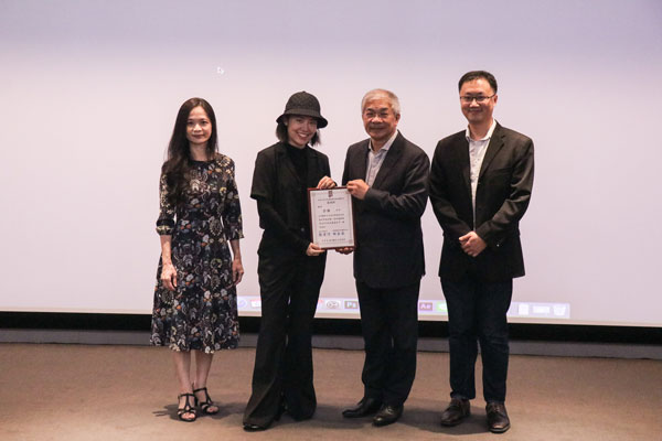 圖二:授課老師頒發感謝狀給故口傳系系友余惟