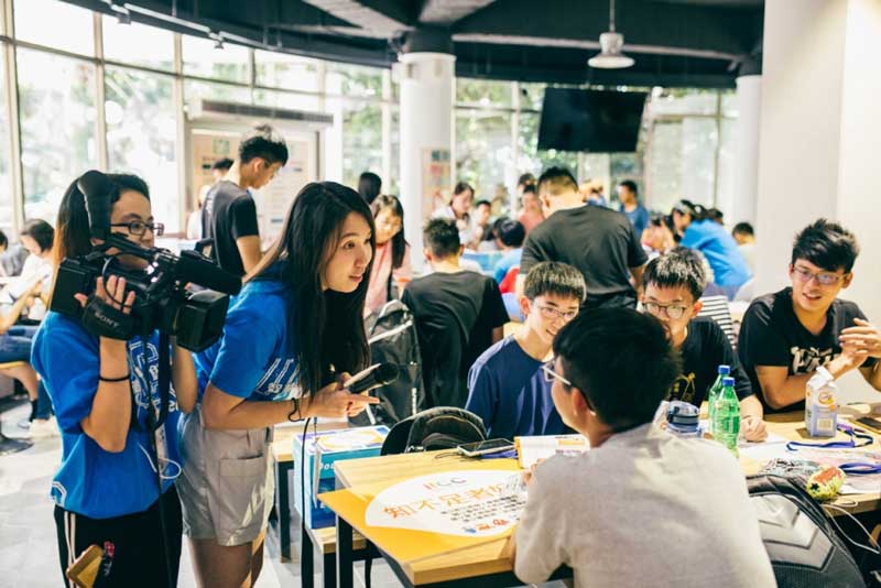 圖三:世新大學學生報導團隊記錄競賽珍貴時刻,展現獨具特色的全媒體大學社會責任,圖為2018年智鐵競賽在世新
