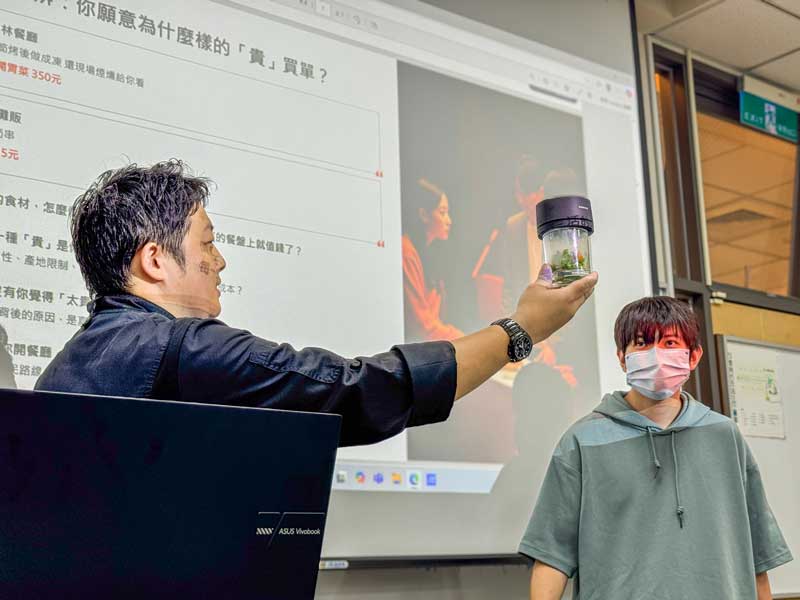 課程內容涵蓋料理風味、空間設計、服務細節及整體用餐氛圍,全面解析頂級餐廳的核心元素。協同教學老師、米食企業負責人張傳卿,一步步帶領大一學生品嚐松露、紅酒燉牛肉及蘆筍果凍沙拉等精緻料理,並透過學習單設計,啟發學生思考食材價值與餐飲文化背後的深層意義。此外,課程還探討咖啡廳、夜市及美食街等場域如何透過光線、座椅材質及音樂選擇影響顧客的用餐體驗,進一步引導學生以鏡頭講述食物故事,建立個人化的美學觀點。世新觀光系主任林長郁指出,這門課程的設計不僅在於舌尖上的享受,更希望透過實作與理論結合,幫助學生理解餐飲藝術的多層次魅力。