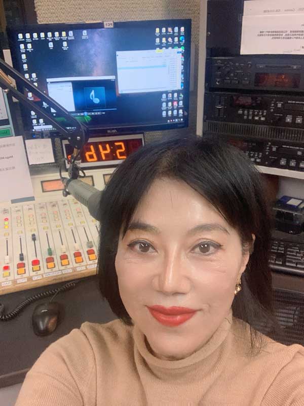 圖二:美國洛杉磯KAZN AM1300中文廣播電臺節目《盼盼當家》主持人校友黃盼盼專訪世新大學校長陳清河(黃盼盼提供)