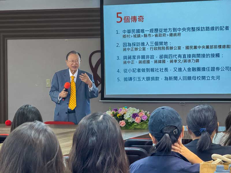 圖一:世新校友、資深媒體人戴震在校慶日舉辦「新聞老兵傳奇」講座