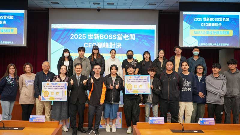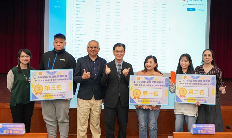 模擬經營,實戰決策,世新大學企業管理學系以創紀錄的88組參賽隊伍,打造一場跨領域學生的商業智慧對決!10日舉辦的「企業經營模擬競賽-2025 世新BOSS當老闆CEO巔峰對決」決賽中,企管系「世新企管財富滿盈」、新聞系「超錢部隊」與財金系「好玩遊戲」分別奪得前三名,為這場歷時數月的經營挑戰畫下完美句點。