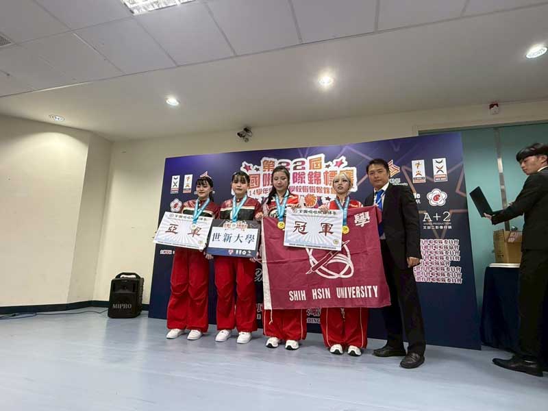 身兼世新大學熱舞社指導老師的李敏玲分享,由世新大學熱舞社組成的A隊「宜蘭幫」,包括英語系陳澤寬、法律系林郁岑、中文系黃子睿、影視學程李少閎、劉聿棨、陳靖恩等,在嘻哈團體小組大專組以創意動作與流暢表現拿下冠軍,B隊由傳管系陳俞彤、陳宥名、呂理育、公廣系阮宥翔、林巧涵、蕭東諒與觀光系張詔安組成,以穩定的表現獲得亞軍,包辦前兩名,展現出團隊的默契與實力。傳管系呂理育與公廣系阮宥翔則在嘻哈雙人大專男生組繳出強勢表現,斬獲冠軍。