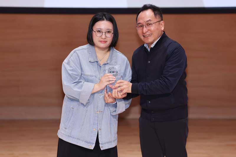 圖二:世新新聞系學生籃沁妤(左)榮獲2025 PeoPo公民新聞獎短片報導學生組(公視提供)