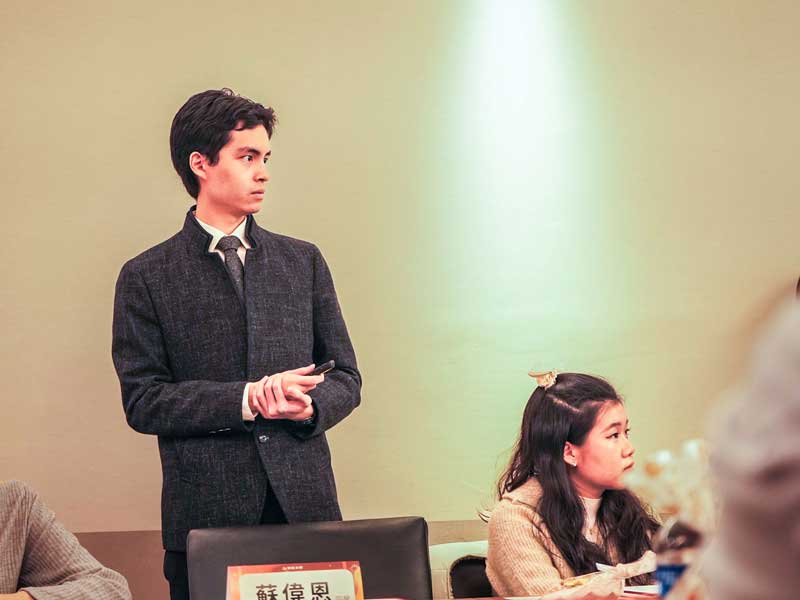 廣播電視電影學系學生蘇偉恩則分享了他在世新大學期間的影視創作經歷,展現了學校對學生專業實踐的支持。他提到,自己在大一時以定格動畫《Iggyville》榮獲「世鑫獎」最佳動畫片與最佳視覺特效,這段經歷成為他影像創作之路的重要里程碑。而科技短片《IA.AI》以人工智慧為主題,探討科技與人類未來的關係,該片使用世新大學與好萊塢同步的虛擬攝製科技進行拍攝後製,獲得第八屆台積電青年築夢計畫和萬海航運贊助,成功入圍美國羅德島國際電影展的短片項目。此外,他參與了聯華電子循環經濟資源創生中心的影像製作專案,擔任影像顧問,協助推廣企業的永續發展理念。他感謝旨味國際獎學金的支持,讓他能夠專注於學業與創作,並期望能以影像作品展現世新學子的實力與創意。