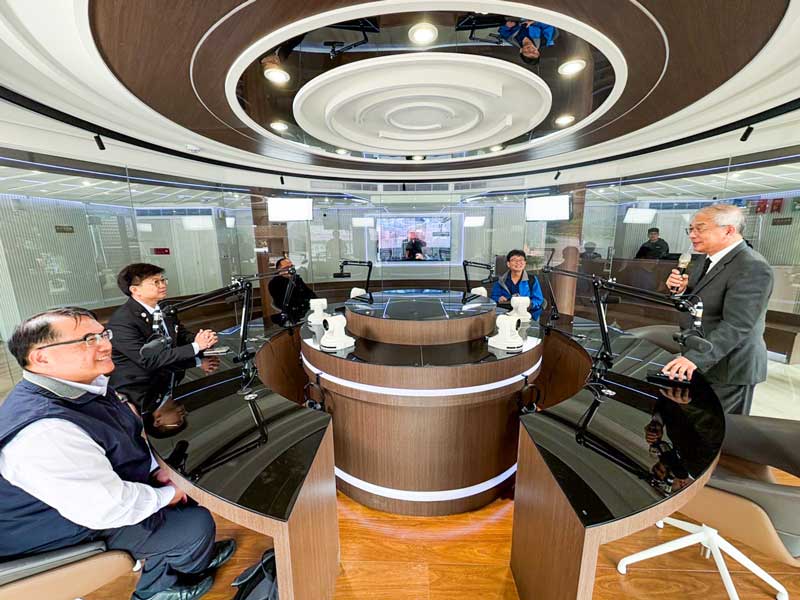 圖二:潮州高中校長林逸文等人參訪世新大學圓桌影音播客直播間