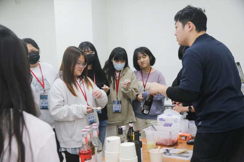 「米其林等級玩家模式ON」則由張傳卿帶來世新觀光系被學生評為「神仙課」的「美食餐廳品味鑑賞」課程,帶領學員探索餐飲藝術與風味分析。他以番茄粒與橄欖油為例,指導學員運用「風味輪」感知食材的層次,並用準確的語言表達個人味覺經驗。他強調,餐飲藝術的核心在於理解食材背後的文化價值與創造力,這些能力是人工智慧無法取代的。