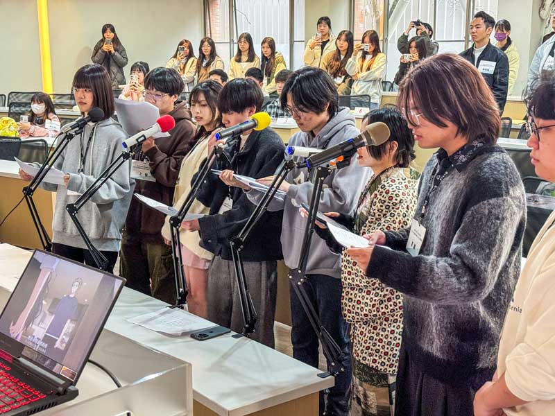 活動亮點之一是「日語配音體驗課程」,由世新日文系教師百瀬英樹帶領,並結合「配音讀書會」成員的實作示範,讓學員親身參與錄音與配音流程。課程素材選自動畫作品《香花凛然綻放》(る花は凛と咲く),學員分組練習劇本並完成錄音,透過小組互動遊戲增添趣味。百瀬英樹表示,配音不僅是語言學習的延伸,更是創造角色的過程。曾於2025年第18屆全國大學生日語配音比賽中獲得個人獎第一、二名的張芷綾與謝承諺,現場分享了世新日文系與數位多媒體設計系的跨系合作經驗,並以原創動畫配音為例,展現校內資源如何幫助學生累積實務能力。