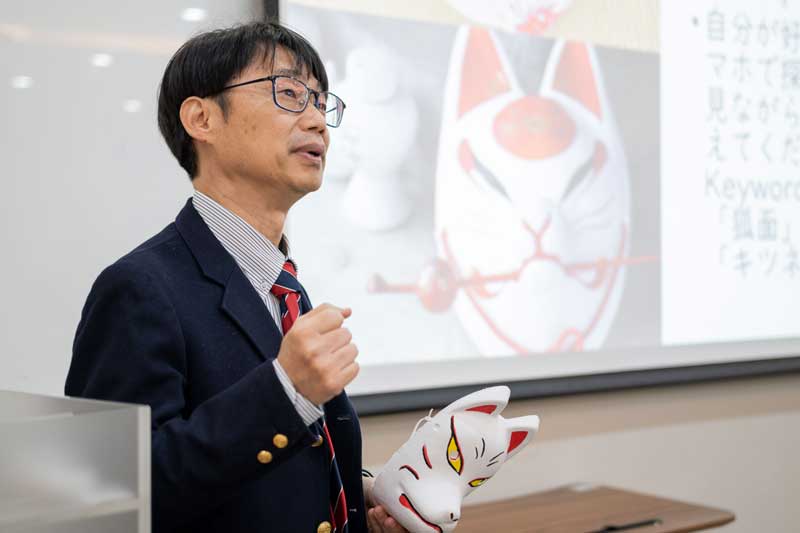 圖四:世新大學日文系助理教授中村直孝介紹狐狸面具的文化背景