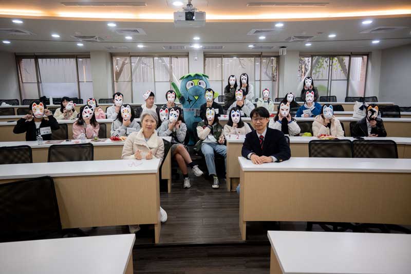 另一項課程「和服的魅力」,由世新大學和服研究社社長廖本靜主講,帶領學員認識和服文化的基礎知識與穿著技巧。世新和服研究社成立於日文系師生的共同構思下,致力於打破和服僅限特殊場合的刻板印象,透過著裝實作、文化講座與工藝製作等多元活動,讓學生深入了解和服文化之美,不僅展現傳統工藝的精緻,也是一種尊重禮儀與人文精神的表現。「狐狸面具」繪製則由系上教師中村直孝帶領,學員在課堂中繪製個人化的狐狸面具,並將作品帶回留念。課程結合了藝術創作與文化故事,讓學員透過動手實作體驗日本傳統民俗的趣味與意涵。