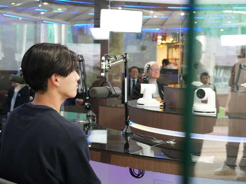 圖四:日本中央大學日華友好會參訪世新大學LVS智能攝製基地及圓桌影音播客直播間等專業學習空間
