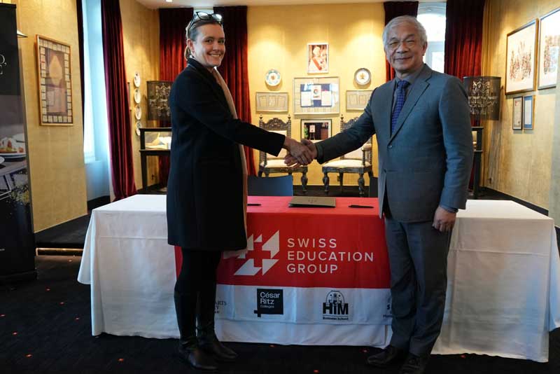 圖四:世新大學校長陳清河(右)前往瑞士與SEG代表簽署雙聯學位合約