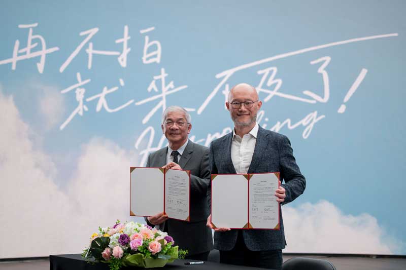圖四:世新大學校長陳清河(左)與LINE TV董事長陳立人(右)代表簽署MOU,預告將有更多世新師生共創直式劇陸續上線