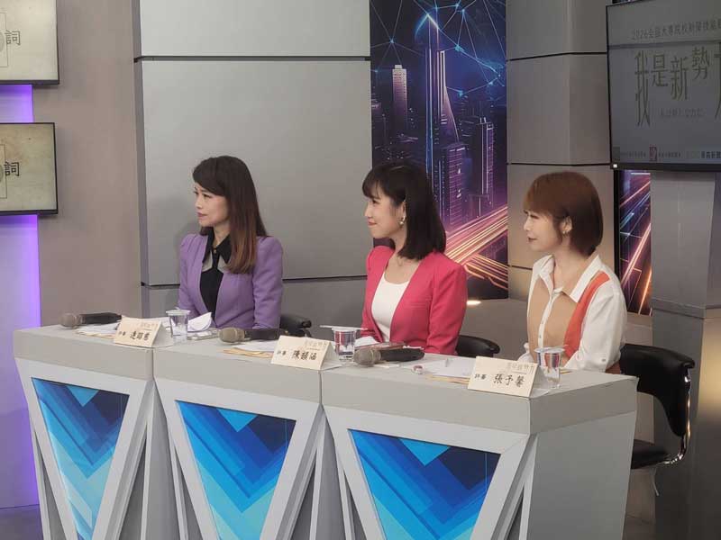 本屆賽事自3月中旬完成報名與初賽選拔,透過模擬電視新聞作業流程,考驗參賽者的播報技巧、時間控管、鏡頭呈現與臨場反應。決賽移師寰宇新聞台專業攝影棚,由東森新聞台主播陳韻涵、東森財經台主播張予馨與寰宇新聞台主播連昭慈擔任評審,從內容掌握到整體台風進行多面向評分,讓選手在燈光、攝影與導播齊備的環境中接受主播級實戰檢驗。