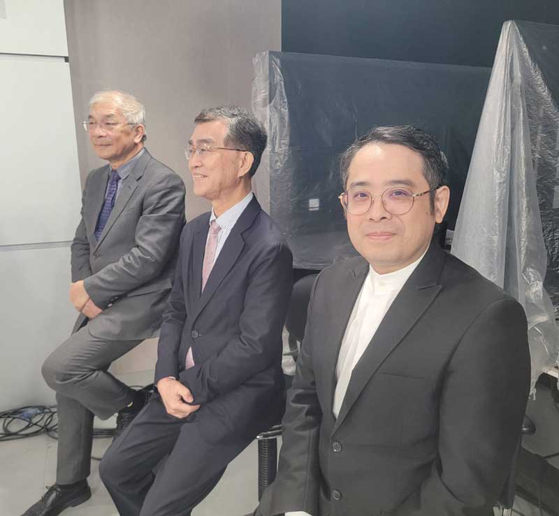 圖三:世新大學校長陳清河(左起)、寰宇電視董事長黃東烈與東森電視副總沈建宏到場為決賽選手加油