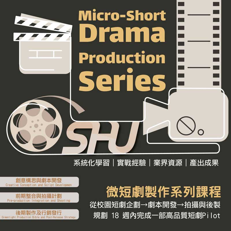 系列課程由專業影視製作團隊與高流量網路短劇團隊合作打造,涵蓋創意構思、劇本開發、拍攝計劃到後期製作與行銷發行的完整流程,以實作為核心,幫助學生掌握影視製作的關鍵技能。其中的「創意與劇本開發」課程,學生將學習運用AI工具輔助故事開發,並以三幕式敘事結構串聯50集、每集3分鐘的微短劇企劃。課程還引入好萊塢業界案例,包括「綠燈委員會(Greenlight)」評審機制的長片劇本、拍攝計畫書(Greenlight book)與製作寶典(Production Bible),幫助學生提升劇本完整性與吸引力,並完成試播集(Pilot)劇本與專業投資簡報(Pitch Deck)。